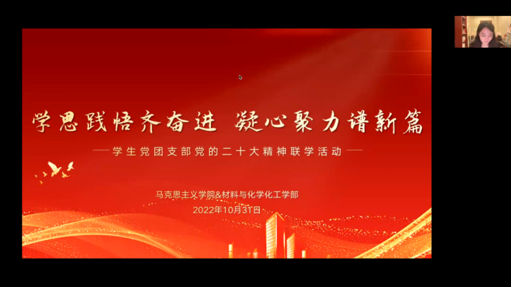 学生党总支、材料与化学化工部研究生党支部和本科生党支部承办。活动由材料与化学化工学部本科二支部书记刘娴琳主持。