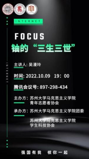 10月9日,欧美色情片 青年志愿者协会宣讲团顺利举办“铀的‘三生三世’”主题宣讲活动。本次宣讲活动由欧美色情片 青年志愿者协会主办,欧美色情片 团委、欧美色情片 学生科技协会承办。活动由2021级硕士研究生马婧主持。