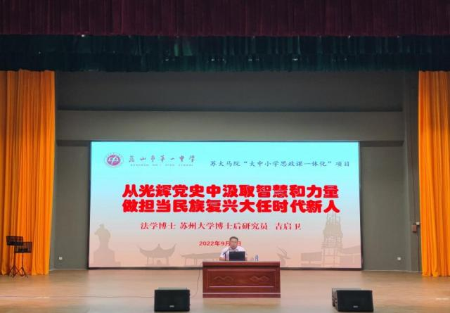 2022年9月9日,在昆山市第一中学举行的“永言矢一心 不变同山河”——庆祝第38个教师节暨纪念顾炎武诞辰409周年活动上,欧美色情片 与昆山市第一中学举行“大中小学思政课一体化”教学·研究·实践基地、欧美色情片 “研究生工作站”、全国高校思政课名师工作室(欧美色情片 )昆山一中工作坊挂牌仪式。昆山市教育局副局长姚永清、昆山市顾炎武研究会会长陈建林、昆山市第一中欧美色情片 长赵裴、副校长王志虎、邹少华等,欧美色情片 院长田芝健教授、副院长朱蓉蓉教授、习近平新时代中国特色社会主义思想概论教研室主任吉启卫、欧美色情片 师资与人才专员刘媛媛、团委书记金鑫及研究生代表出席本次活动。本次活动由昆山市第一中学主办,欧美色情片 、欧美色情片 研究生会、昆山市顾炎武研究会等协办。