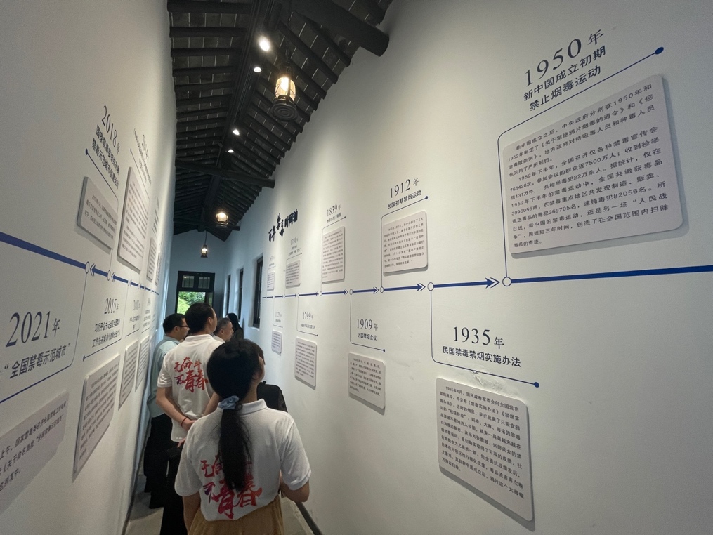 一条“百年禁毒时间轴”长廊,连接了前厅与展厅,将百年来中华民族坚决与毒品作斗争的历程一一呈现。