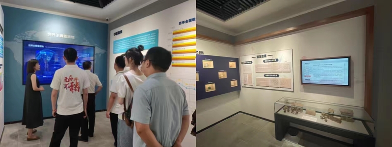 图为:实践团队成员在第三展区体验操作互动电子屏