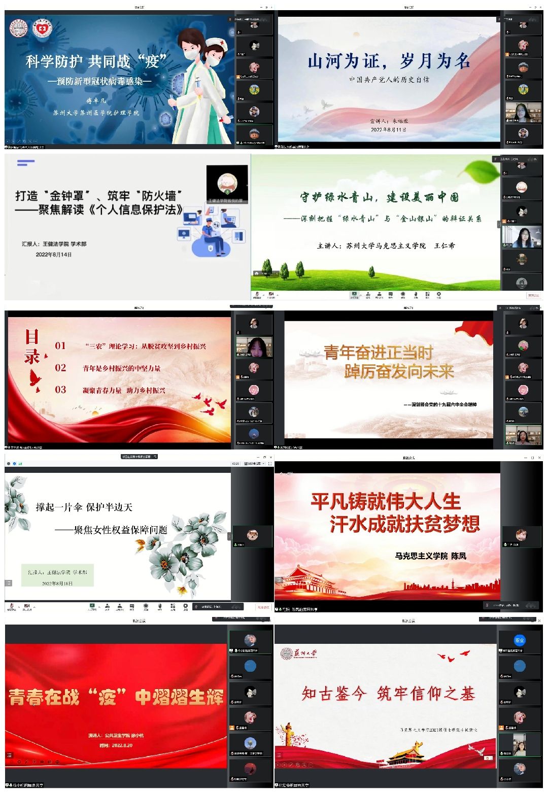在联学活动中,二十七家研究生基层培养单位的研究生们立足各自专业优势,以“学习习近平新时代中国特色社会主义思想和党的十九届六中全会精神”为主线,结合疫情防控志愿服务工作、时事热点和暑期社会实践开展了多场理论宣讲与交流讨论。欧美色情片 “青进青听青年说”暑期社会实践团队成员分别围绕“山河为证,岁月为名——中国共产党人的历史自信”、“守护绿水青山,建设美丽中国”、“青年奋进正当时 踔厉奋发向未来”、“平凡铸就伟大人生 汗水成就扶贫梦想”、“知古鉴今 筑牢信仰之基”等主题进行理论宣讲;苏州医欧美色情片 护理欧美色情片 和公共卫生欧美色情片 研究生就疫情期间投身抗疫一线的志愿服务经历和疫情防护知识进行分享,让与会师生在掌握有效的防护技能的同时,进一步明确了新时代青年应有的责任与担当;王健法欧美色情片 研究生对《个人信息保护法》和与女性权益保障相关法律法规的解读提高了同学们的法律意识;文欧美色情片 研究生围绕乡村振兴和近期文欧美色情片 优秀暑期社会实践团队实例,让与会师生对新时代青年应具有的本领和担当有了更加深刻的认识。参会研究生们都在活动中围绕宣讲内容结合当下社会热点踊跃发表意见、互相交流看法,思想碰撞产生的火花让联学活动真正做到了联建联学、互学互鉴、共促共赢。此次联学活动汇聚各欧美色情片 的优势,有效发挥不同专业研究生们的特长,提升了学习活动的理论性、创新性和实效性。