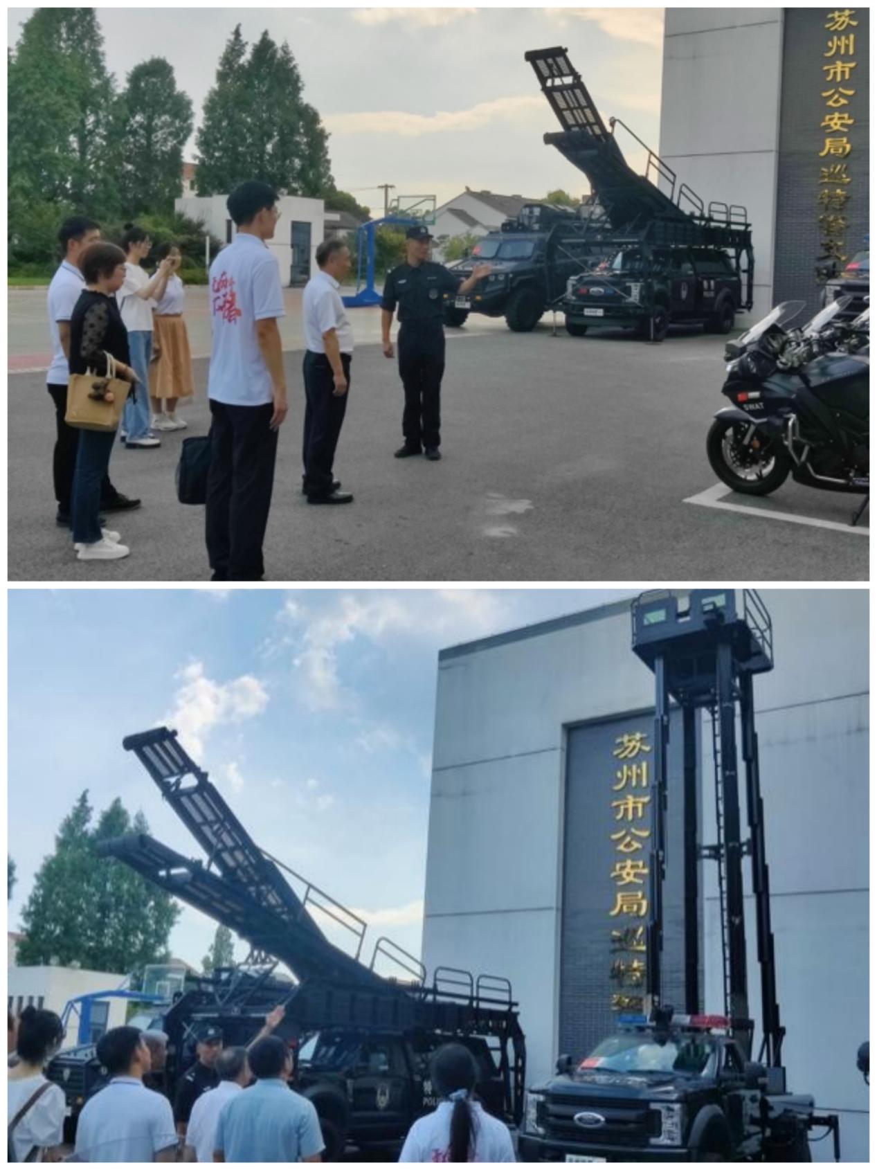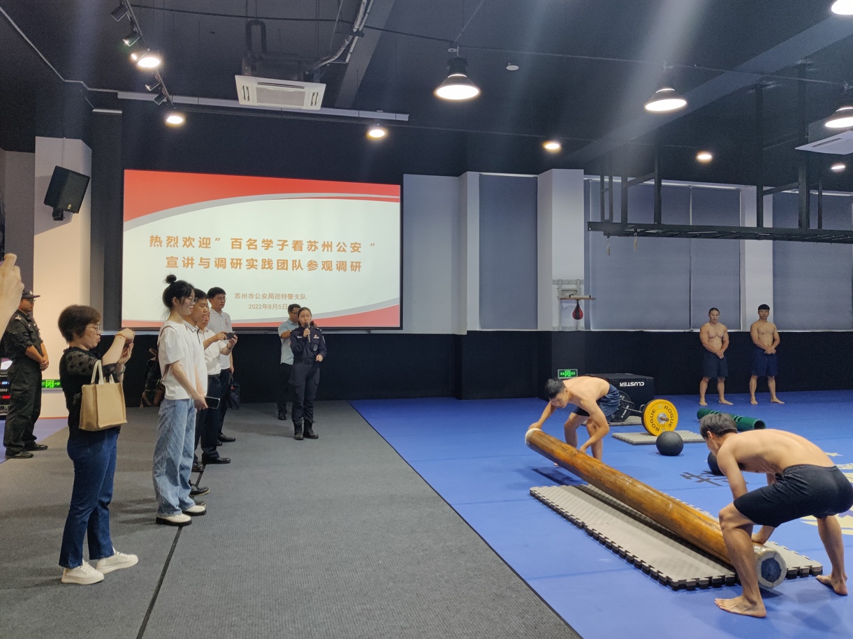 随后,调研实践团队参观了巡特警车辆装备展示,并观摩了特警队员体能训练,真切感受到这支“利剑突击队”在党的坚强领导下,践行着“特别讲政治、特别守纪律、特别能吃苦、特别能奉献、特别能战斗”的特警精神,始终筑牢一切为党、一切为民的思想基石,不断砥砺过硬的技能本领,守护苏城平安稳定。