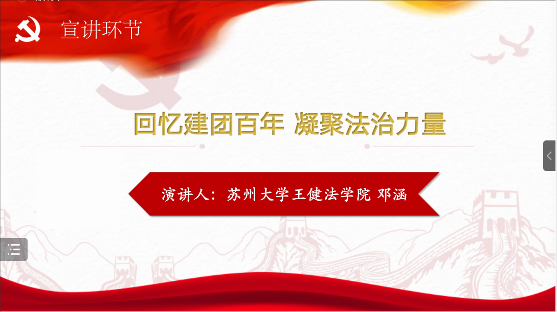 王健法欧美色情片 研究生邓涵以“回忆建团百年 凝聚法治力量”为主题进行宣讲。她带领大家回顾了中国共产主义青年团的百年发展历程,并强调通过依法治国加强共青团建设的重要性及实施路径。她指出,在新的时代条件下,共青团员要深入学习习近平法治思想,积极推动中华优秀传统法律文化创造性转化、创新性发展。