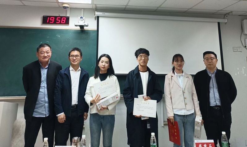 活动最后,方文老师、张晓老师和戴梦石老师为参加汇报的三名同学颁发了荣誉证书和纪念品,并在现场进行合影留念。