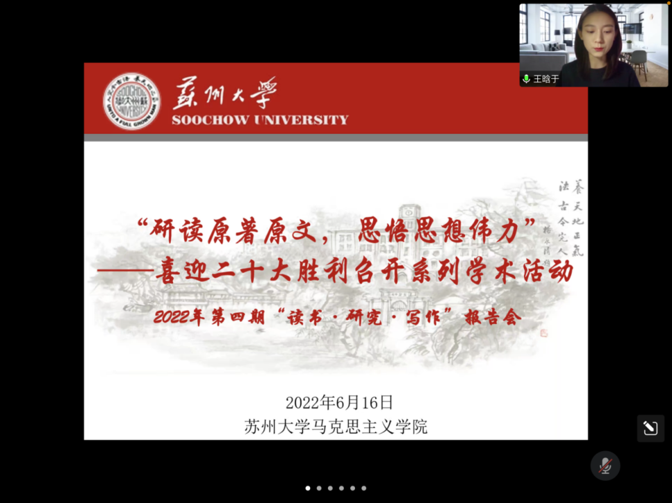 在线举办了2022年第四期“读书·研究·写作”报告会,本次报告会以“研读原著原文 思悟思想伟力——喜迎二十大胜利召开系列学术活动”为主题,集中研读《习近平谈治国理政》第三卷,深入学习领会习近平新时代中国特色社会主义思想,从中汲取精神营养和思想力量。欧美色情片