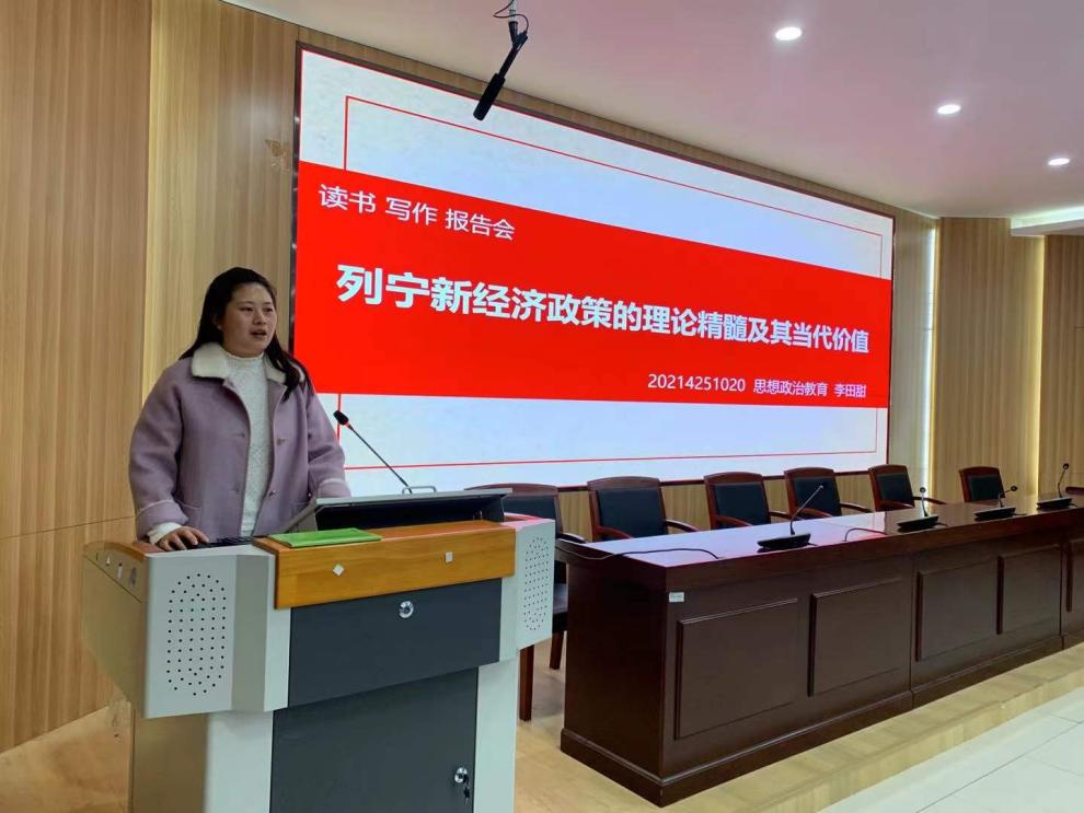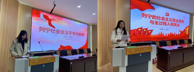 植洁丽同学以“列宁社会主义平等观解读”为主题,从列宁社会主义平等观的形成过程、主要内容、基本特征和当代价值四个部分对列宁的平等观做了全面阐述,并指出在建设社会主义现代化强国的过程中,我们应深入研究列宁的社会主义平等观,汲取精华,继续推进中国特色社会主义平等观建设。任宇同学以“列宁的社会主义民主思想与全过程人民民主”为主题,介绍了列宁社会主义民主思想的发展路径和主要内容,并指出中国式民主是全过程的人民民主,是使中国人民真正实现人民当家作主的民主形式,也是中国对人类政治文明的重大贡献。李田甜同学将列宁新经济政策的理论精髓概括为人民性、实践性、政治性和利用资本主义建设社会主义四个层面,并依次分析了新经济政策的时代价值。