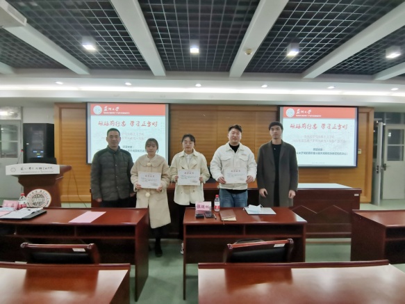 活动最后,王淼老师和张建晓老师为参加汇报的三名同学颁发了荣誉证书和纪念品,并在现场进行了合影留念。