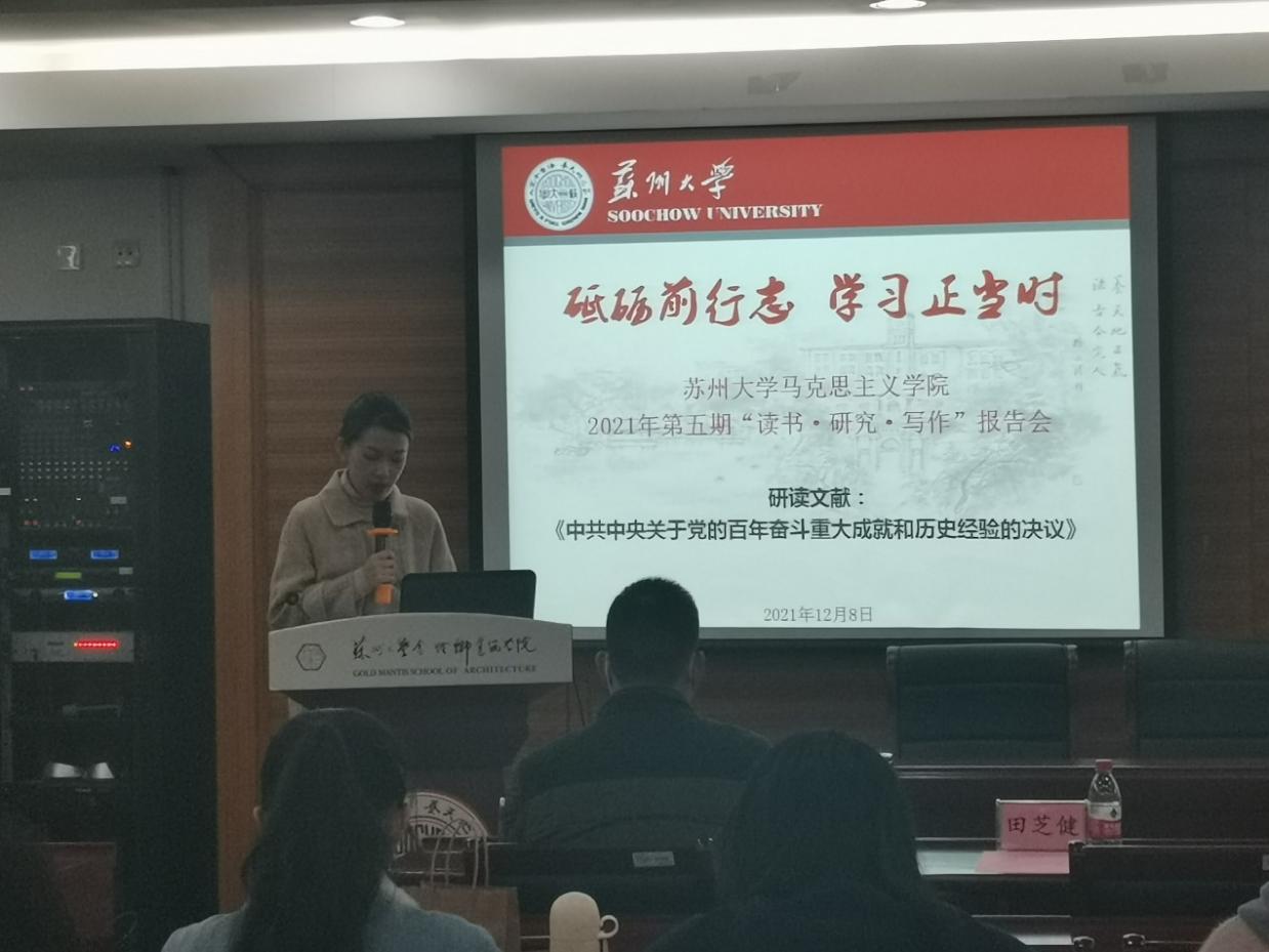 鉴往知来,励行致远。与会师生通过对《中共中央关于党的百年奋斗重大成就和历史经验的决议》的学习,回顾了建党百年来的伟大成就和经验启示,深刻感受了党的光辉品质。此次“读书·研究·写作”报告会的成功举办,为同学们进一步做到实事求是、研究经典著作、提高理论素养奠定了坚实基础,也激励着同学们以咬定青山不放松的执着奋力实现既定目标,以行百里者半九十的清醒,做不懈推进中华民族伟大复兴奋斗者和贡献者。