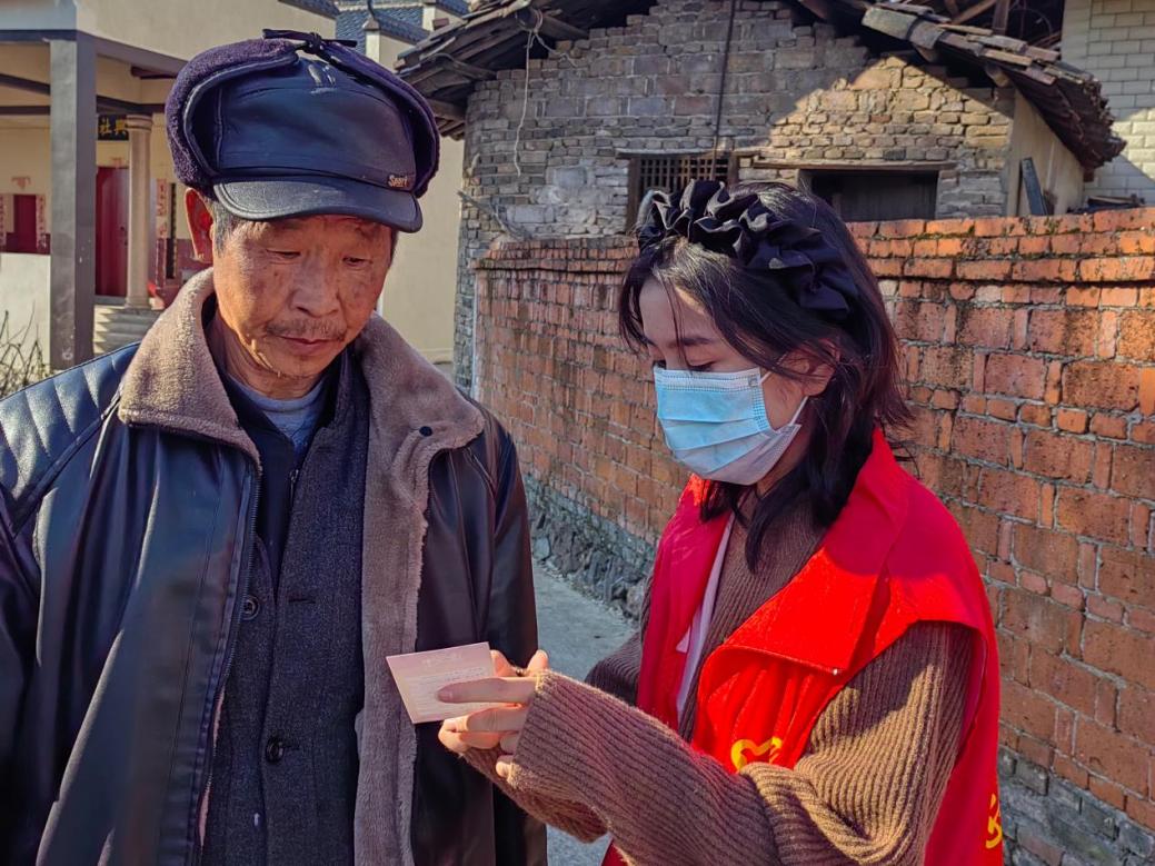 在江西省上饶市,2022级硕士研究生黄悦返乡后积极响应家乡的政策,主动报名参加社区疫情防控工作。黄悦在大阳亭社区的王家屯协助驻村干部向独居老人、孕妇等特殊人群宣传防疫知识,她细心且耐心地用最接地气的家乡话,为年龄大且知识水平有限的村民讲解如何预防新冠病毒以及阳康后的注意事项。即使是在雨雪天,黄悦也毫不懈怠,坚持前往每一位高龄老人的家中宣传防疫知识。此外,黄悦还协助社区工作者向村里70周岁以上的老年人发放防疫爱心包和连心卡,以便帮助老年人在遇到各种问题时能够精准联系相关人员,为老年人送温暖、送安心。黄悦表示:“作为一名中共党员,身为苏大马院学子,能为家乡的老百姓做点事是我一直以来想做的事情。在家乡的基层社会实践活动中,我收获颇多,未来也将再接再厉,用心做好每一次志愿服务。”