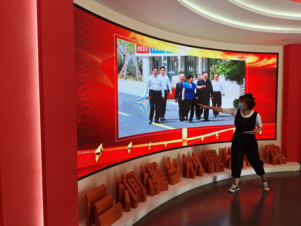图为:讲解员讲述习近平总书记在三涧溪视察的故事