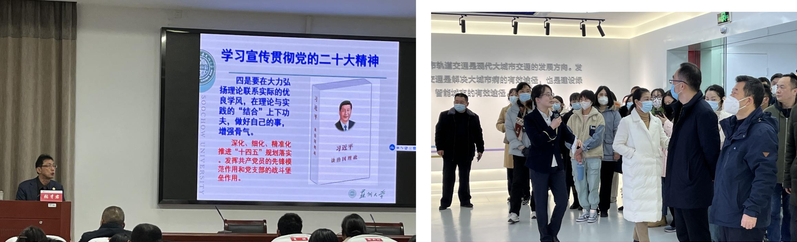 内外三位教授联袂授课,内容涵盖党的二十大精神、国际国内安全形势分析、新媒体时代下的舆情应对等,同时结合现场教学,深入苏州轨道交通集团参观学习国企党建,务求做到学深悟透、融会贯通、知行合一。